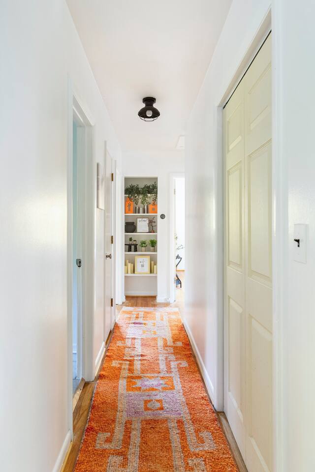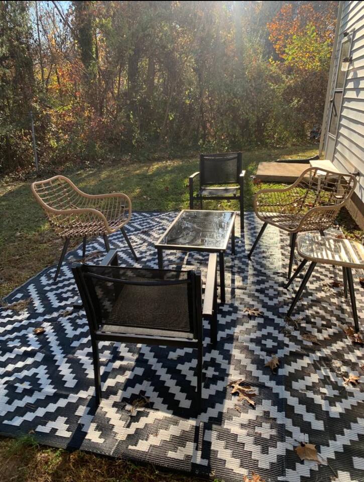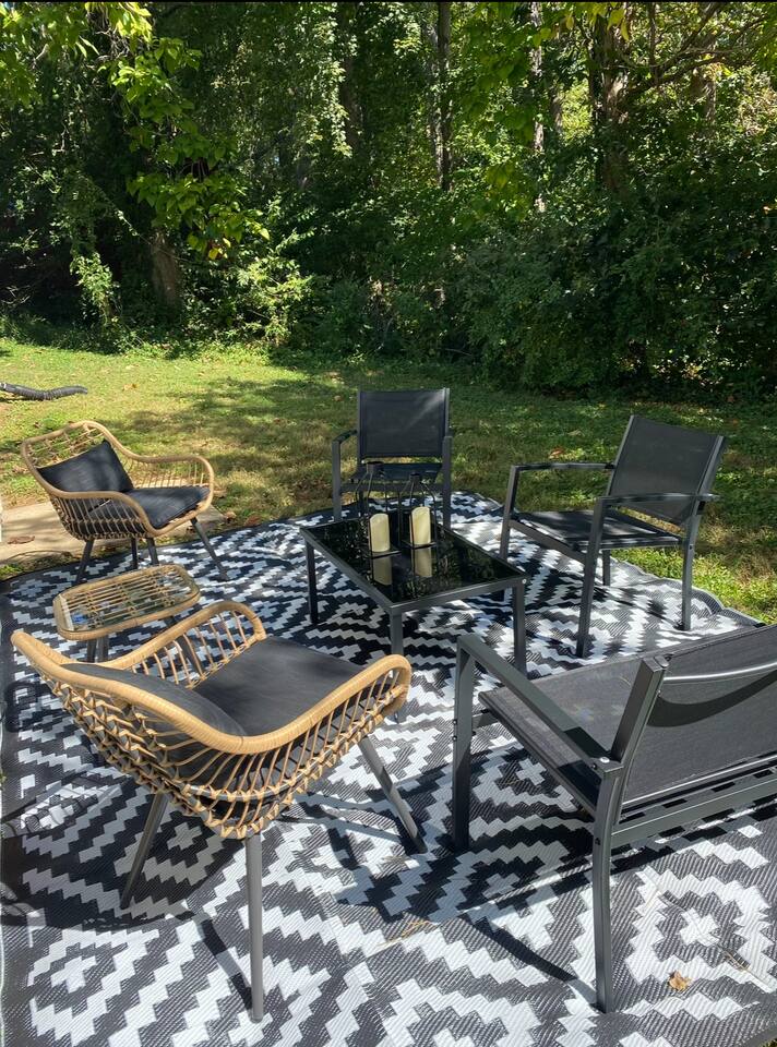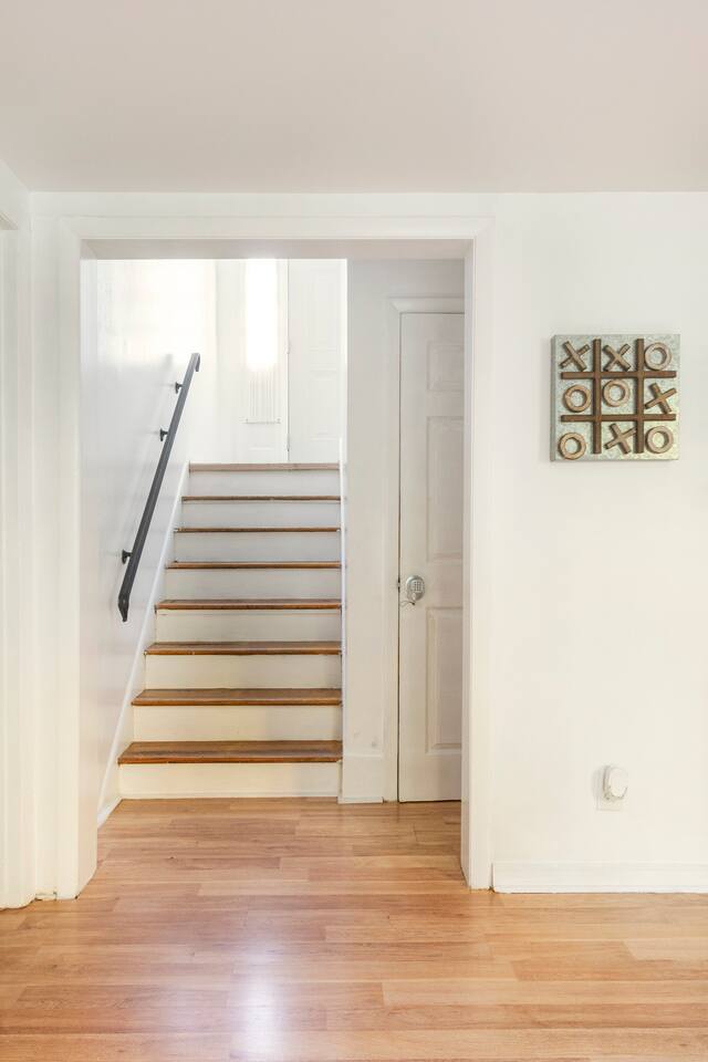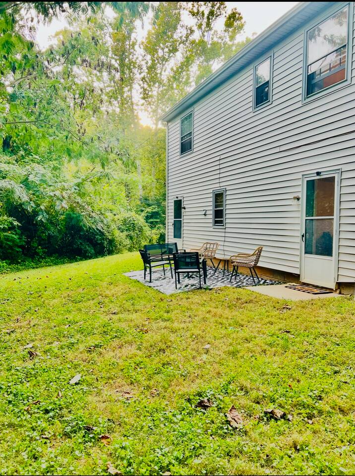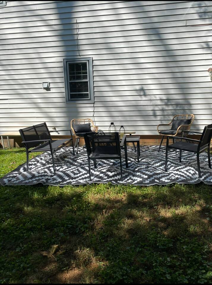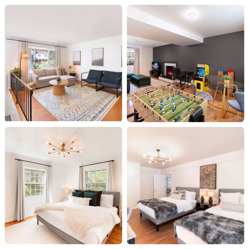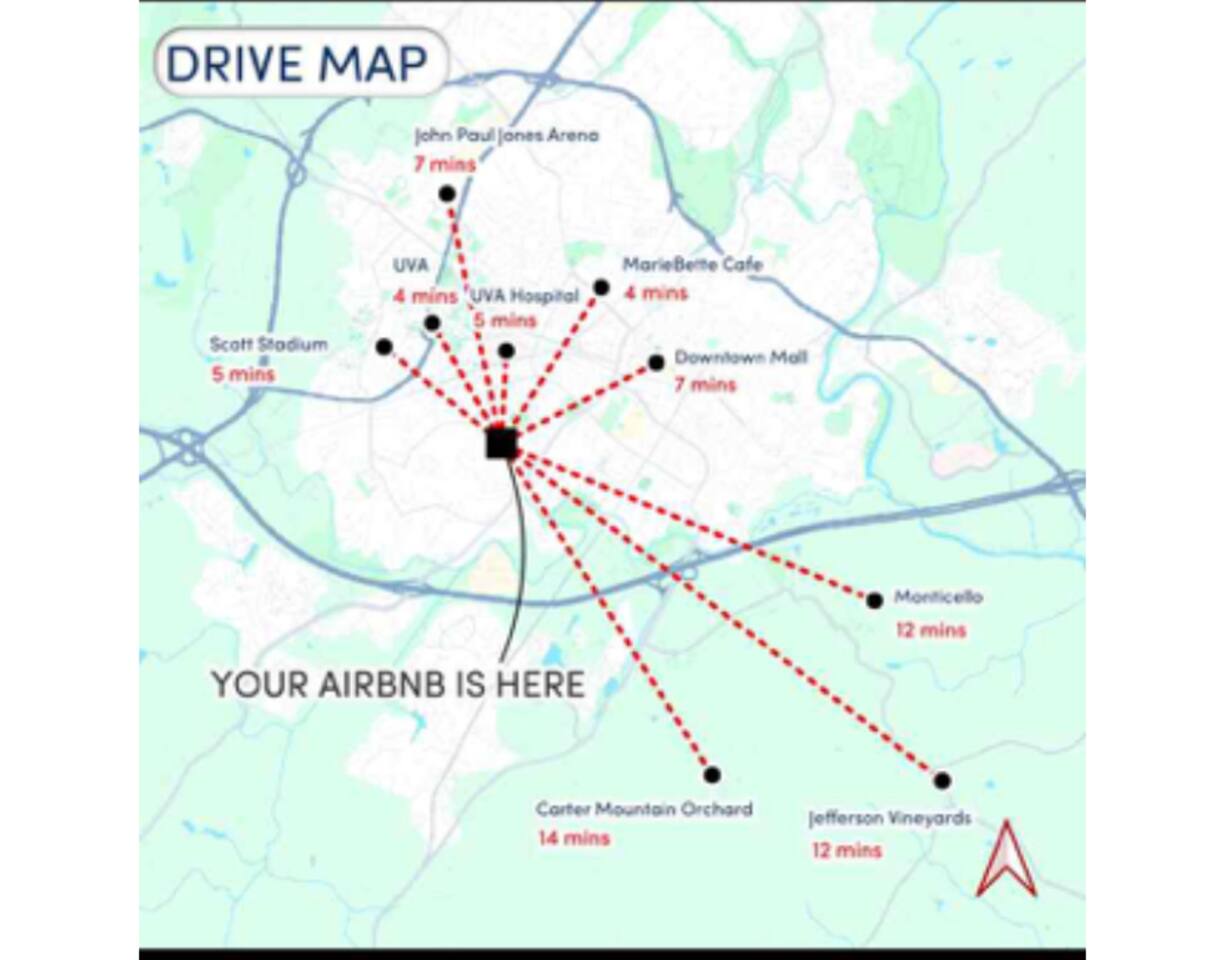 -The home is great for families looking for spaciousness and a place to relax without having to venture far to explore everything that the area has to offer. The Kitchen is on the smaller side. The dining room table fits six. There are two barstools as well. If you have a large group just keep in mind the kitchen is smaller. The quiet 4 bedroom, 2 bath home features 3 bedrooms upstairs and 1 downstairs with an abundance of natural light. 🚙 PARKING Hassle-free parking spot (4) available 2 cars can fit on the driveway and 2 more can park on the street a rare find in Charlottesville! 🏡 ACCESS The single family home is located in a quiet residential neighborhood. 🛏️ BEDROOMS 1✓ King bed + Working Desk & Smart TV 2✓ King bed & Smart TV 3✓ Queen bed + Smart TV 4✓ TWO Queen beds (Basement floor) ✓ Extra: Queen Bed in living room (main floor) the sectional sofa pulls out and can be converted into a 6th bed 🛋️ THE HOME Keyless entry front-door provided ✓ High Speed Wi-Fi ✓ Smart TVs ✓ Large Sectional Couch and Cozy Accent Chairs ✓ Cozy and stylish living room is the ideal place to unwind after a busy day exploring the city. ✓ Washer and Dryer + Detergent ✓ 2 Full Bathrooms 👨🏼🍳 KITCHEN Prepare meals in the well-stocked kitchen, complete with modern appliances, cookware, and dishes and fully equipped kitchen with: ✓ Coffee machine ✓ Blender ✓ Kettle ✓ Toaster ✓ Cooking utensils ✓ Knife set ✓ Cooking pans ✓ Condiments ✓ Coffee ✓ Ice Machine 🚿 BATHROOMS ✓ Body & Hand Towels ✓ Shampoo ✓ Conditioner ✓ Body Wash ✓ Hand Soap ✓ Hair dryer ✓ Toilet paper 👶🏼 FAMILY-FRIENDLY Planning a family vacation? We’ve got you covered! Our home is equipped with everything you need to make your stay with children smooth and enjoyable: ✓ Pack N Play for your little one’s comfort ✓ Baby high chair for convenient feeding Distance to Nearby Point of Interest: • Scott Stadium - 1 mile walk or 3 minute drive • John Paul Arena - 5 minute drive • Downtown Mall - 5 minute drive