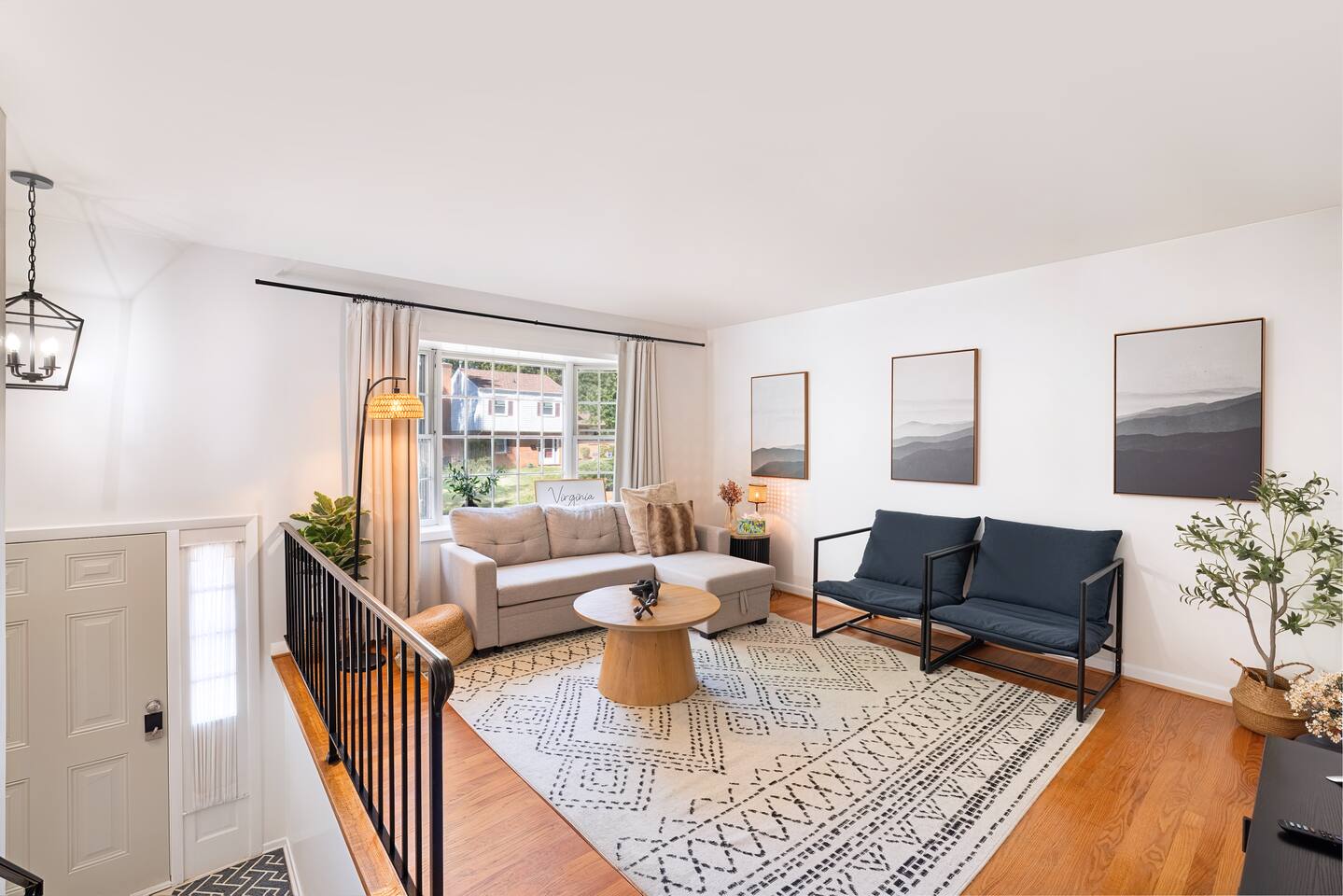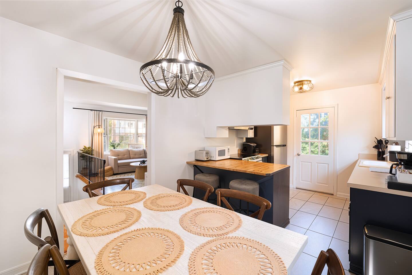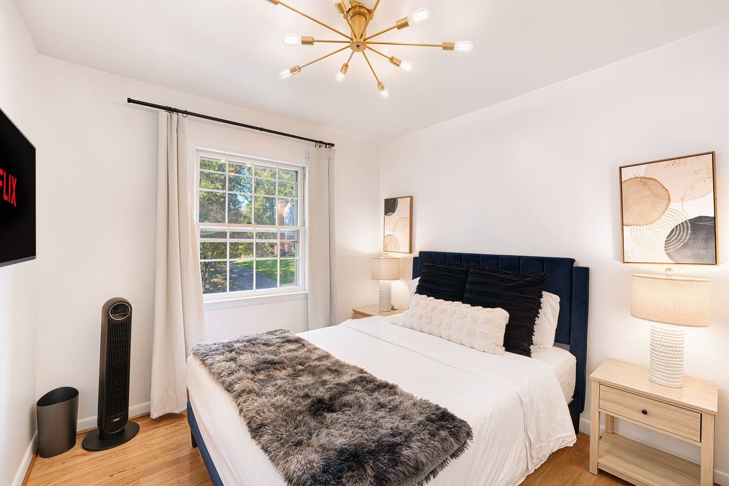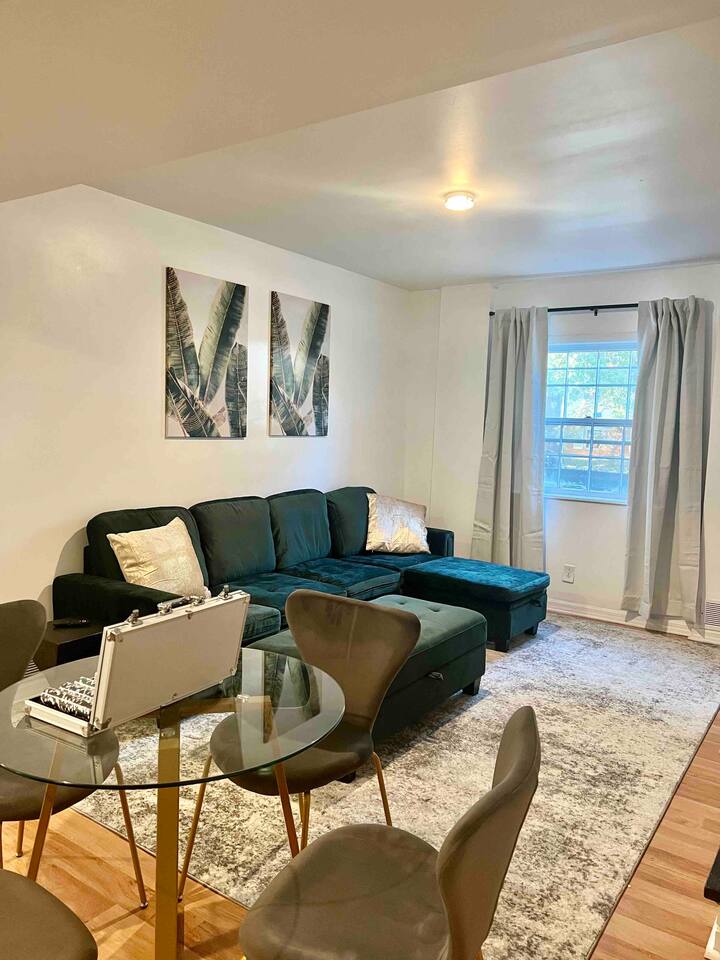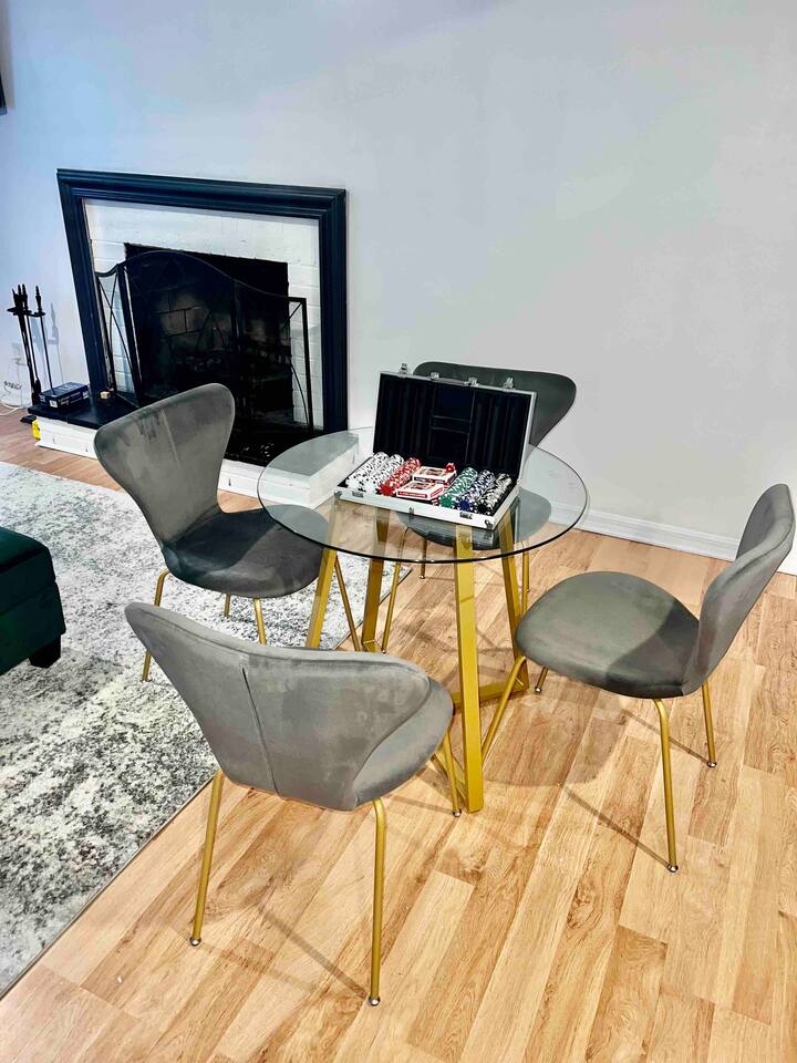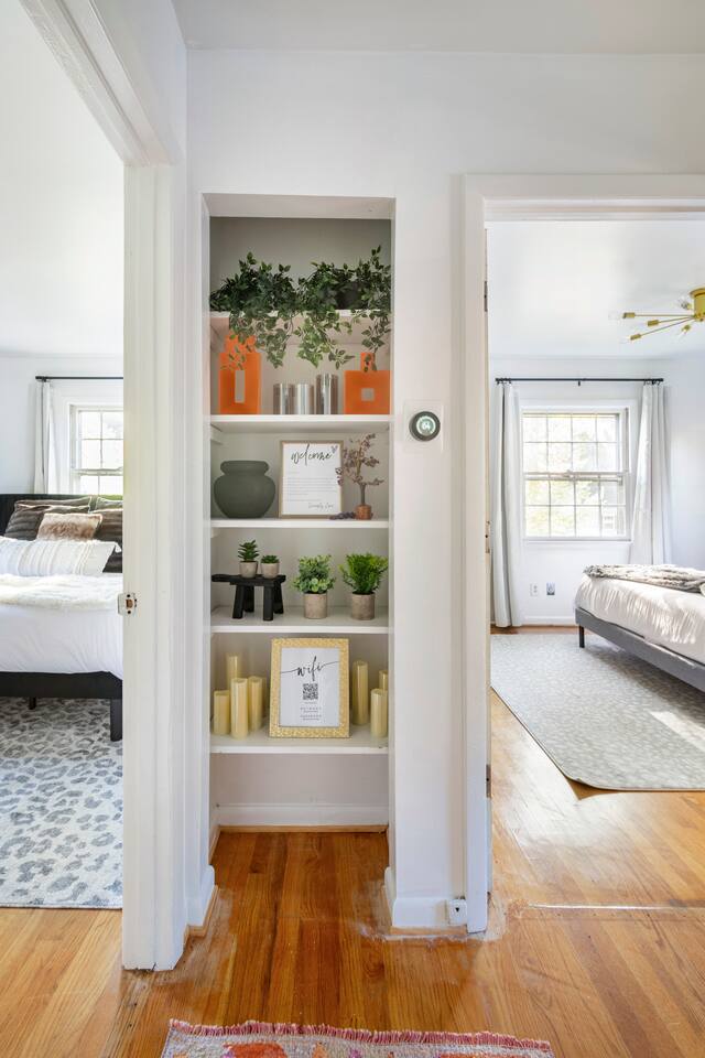 -The home is great for families looking for spaciousness and a place to relax without having to venture far to explore everything that the area has to offer. The Kitchen is on the smaller side. The dining room table fits six. There are two barstools as well. If you have a large group just keep in mind the kitchen is smaller. The quiet 4 bedroom, 2 bath home features 3 bedrooms upstairs and 1 downstairs with an abundance of natural light. 🚙 PARKING Hassle-free parking spot (4) available 2 cars can fit on the driveway and 2 more can park on the street a rare find in Charlottesville! 🏡 ACCESS The single family home is located in a quiet residential neighborhood. 🛏️ BEDROOMS 1✓ King bed + Working Desk & Smart TV 2✓ King bed & Smart TV 3✓ Queen bed + Smart TV 4✓ TWO Queen beds (Basement floor) ✓ Extra: Queen Bed in living room (main floor) the sectional sofa pulls out and can be converted into a 6th bed 🛋️ THE HOME Keyless entry front-door provided ✓ High Speed Wi-Fi ✓ Smart TVs ✓ Large Sectional Couch and Cozy Accent Chairs ✓ Cozy and stylish living room is the ideal place to unwind after a busy day exploring the city. ✓ Washer and Dryer + Detergent ✓ 2 Full Bathrooms 👨🏼🍳 KITCHEN Prepare meals in the well-stocked kitchen, complete with modern appliances, cookware, and dishes and fully equipped kitchen with: ✓ Coffee machine ✓ Blender ✓ Kettle ✓ Toaster ✓ Cooking utensils ✓ Knife set ✓ Cooking pans ✓ Condiments ✓ Coffee ✓ Ice Machine 🚿 BATHROOMS ✓ Body & Hand Towels ✓ Shampoo ✓ Conditioner ✓ Body Wash ✓ Hand Soap ✓ Hair dryer ✓ Toilet paper 👶🏼 FAMILY-FRIENDLY Planning a family vacation? We’ve got you covered! Our home is equipped with everything you need to make your stay with children smooth and enjoyable: ✓ Pack N Play for your little one’s comfort ✓ Baby high chair for convenient feeding Distance to Nearby Point of Interest: • Scott Stadium - 1 mile walk or 3 minute drive • John Paul Arena - 5 minute drive • Downtown Mall - 5 minute drive