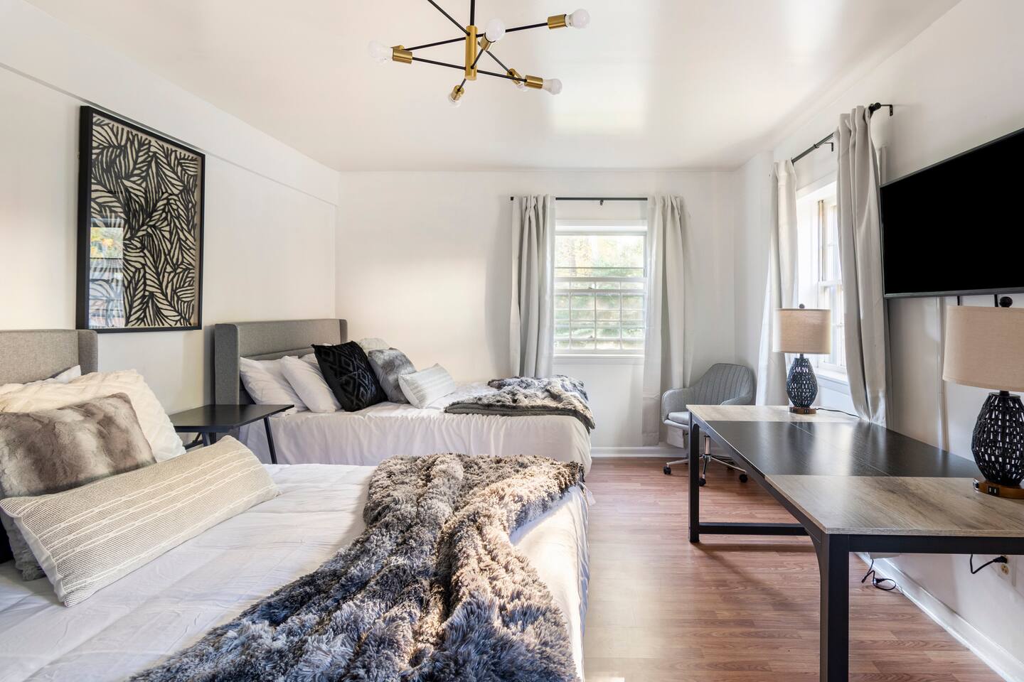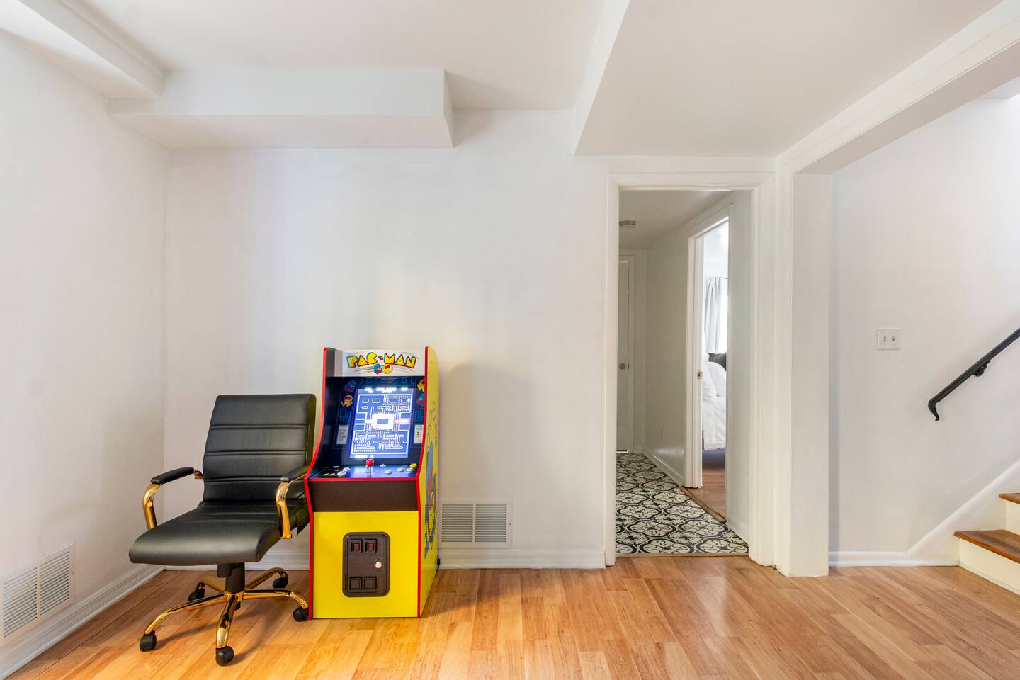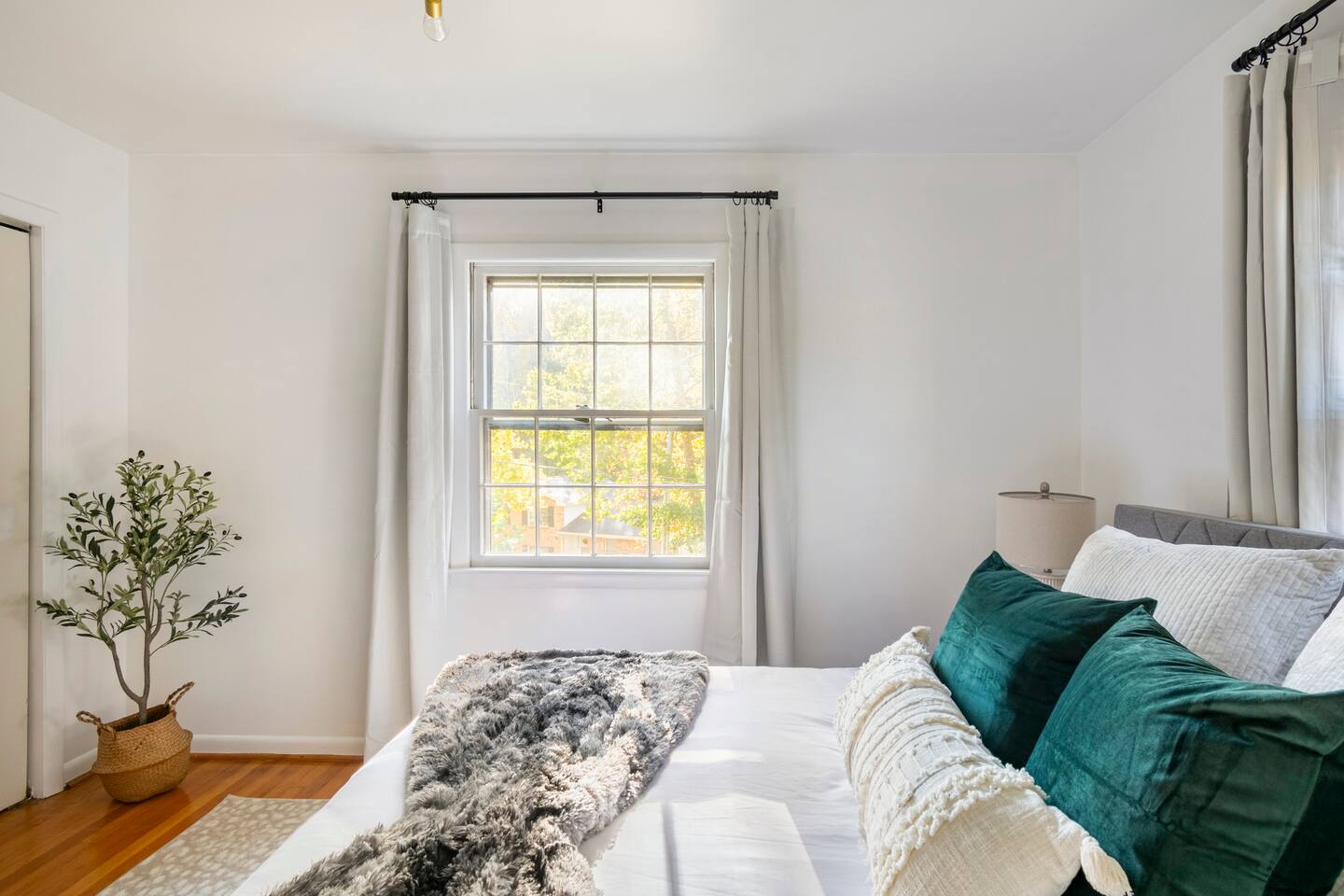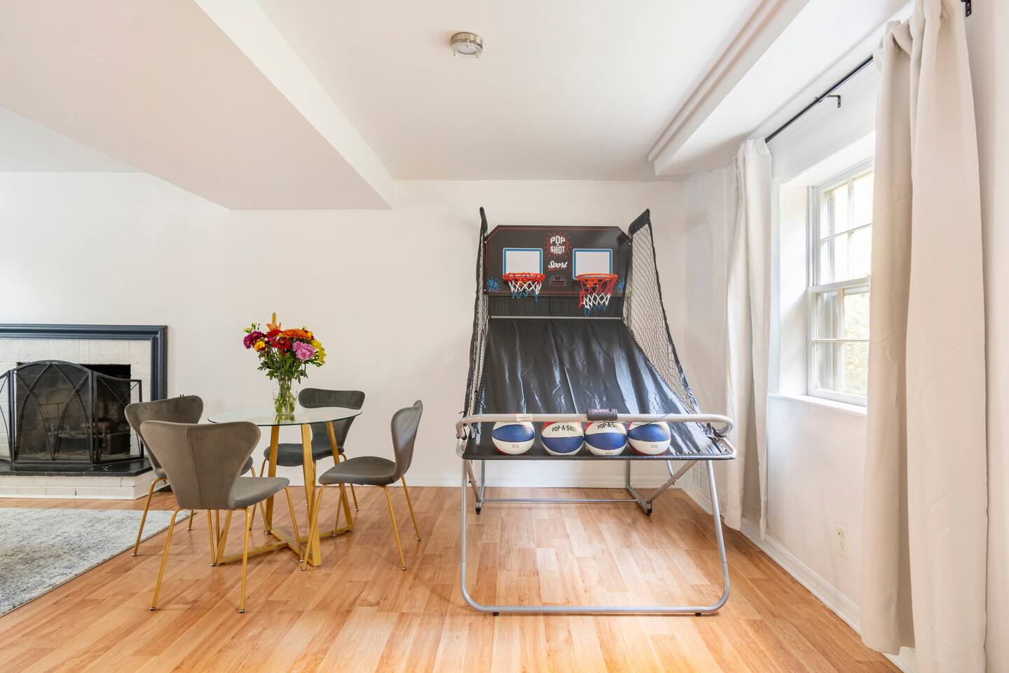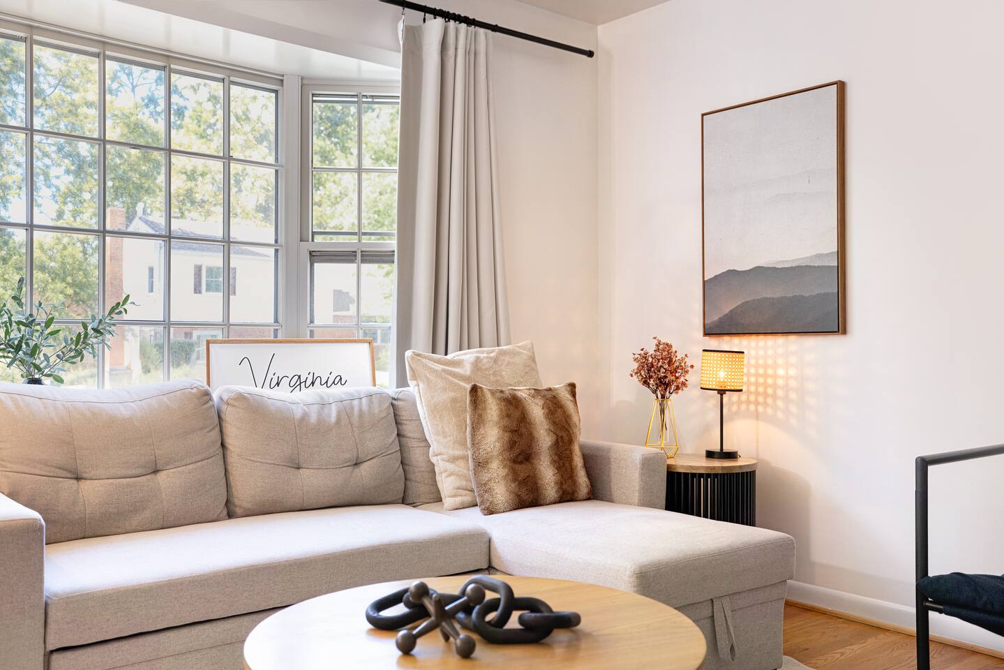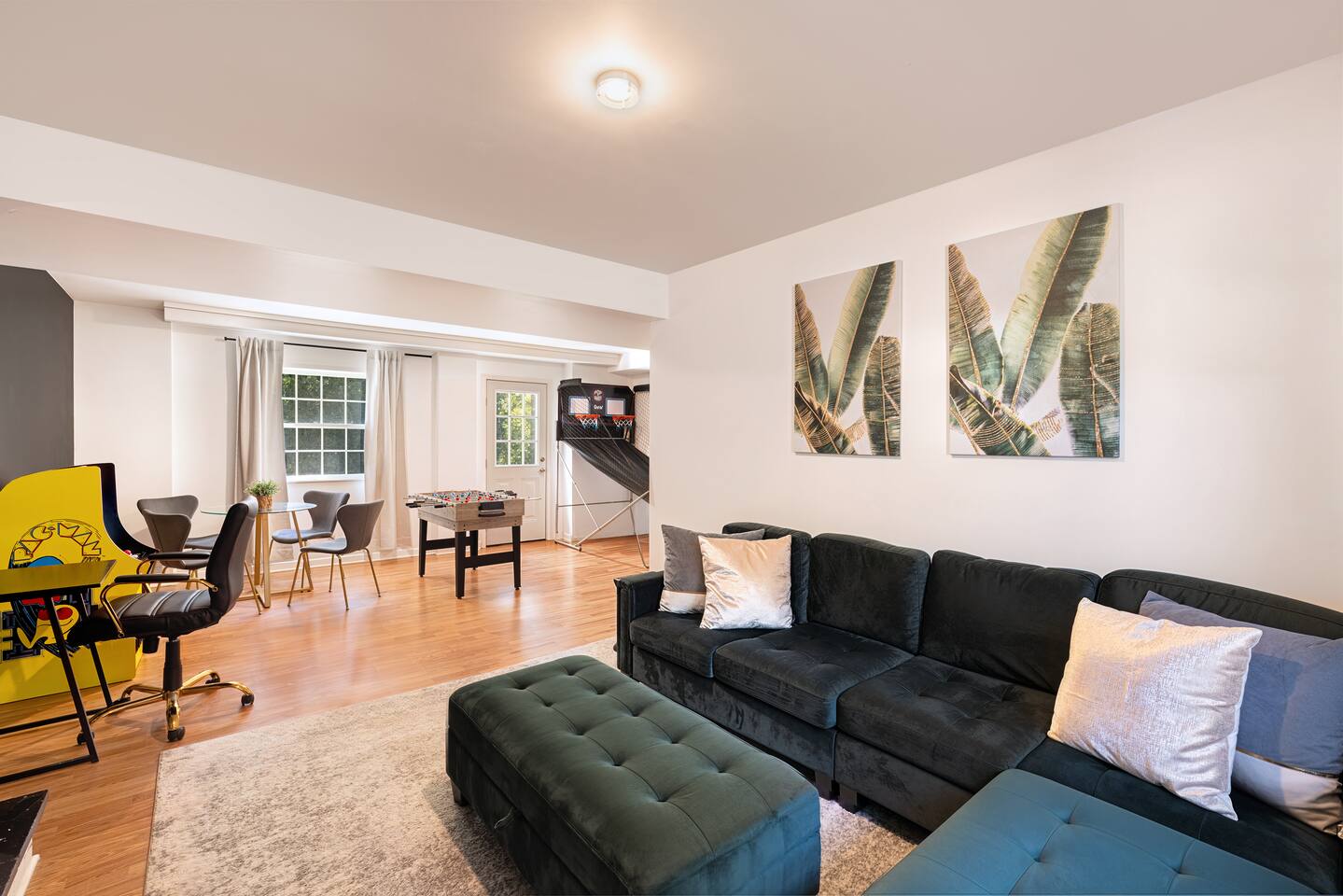 -The home is great for families looking for spaciousness and a place to relax without having to venture far to explore everything that the area has to offer. The Kitchen is on the smaller side. The dining room table fits six. There are two barstools as well. If you have a large group just keep in mind the kitchen is smaller. The quiet 4 bedroom, 2 bath home features 3 bedrooms upstairs and 1 downstairs with an abundance of natural light. 🚙 PARKING Hassle-free parking spot (4) available 2 cars can fit on the driveway and 2 more can park on the street a rare find in Charlottesville! 🏡 ACCESS The single family home is located in a quiet residential neighborhood. 🛏️ BEDROOMS 1✓ King bed + Working Desk & Smart TV 2✓ King bed & Smart TV 3✓ Queen bed + Smart TV 4✓ TWO Queen beds (Basement floor) ✓ Extra: Queen Bed in living room (main floor) the sectional sofa pulls out and can be converted into a 6th bed 🛋️ THE HOME Keyless entry front-door provided ✓ High Speed Wi-Fi ✓ Smart TVs ✓ Large Sectional Couch and Cozy Accent Chairs ✓ Cozy and stylish living room is the ideal place to unwind after a busy day exploring the city. ✓ Washer and Dryer + Detergent ✓ 2 Full Bathrooms 👨🏼🍳 KITCHEN Prepare meals in the well-stocked kitchen, complete with modern appliances, cookware, and dishes and fully equipped kitchen with: ✓ Coffee machine ✓ Blender ✓ Kettle ✓ Toaster ✓ Cooking utensils ✓ Knife set ✓ Cooking pans ✓ Condiments ✓ Coffee ✓ Ice Machine 🚿 BATHROOMS ✓ Body & Hand Towels ✓ Shampoo ✓ Conditioner ✓ Body Wash ✓ Hand Soap ✓ Hair dryer ✓ Toilet paper 👶🏼 FAMILY-FRIENDLY Planning a family vacation? We’ve got you covered! Our home is equipped with everything you need to make your stay with children smooth and enjoyable: ✓ Pack N Play for your little one’s comfort ✓ Baby high chair for convenient feeding Distance to Nearby Point of Interest: • Scott Stadium - 1 mile walk or 3 minute drive • John Paul Arena - 5 minute drive • Downtown Mall - 5 minute drive