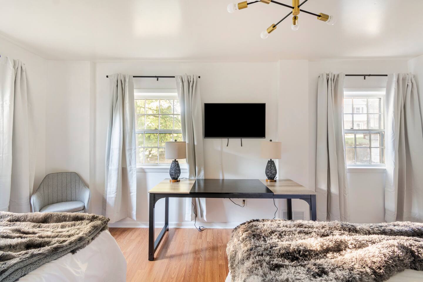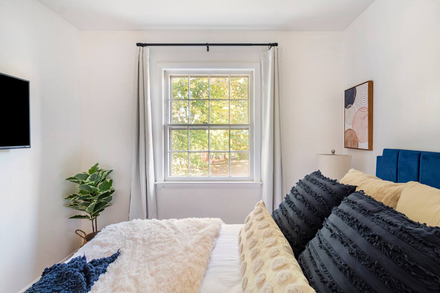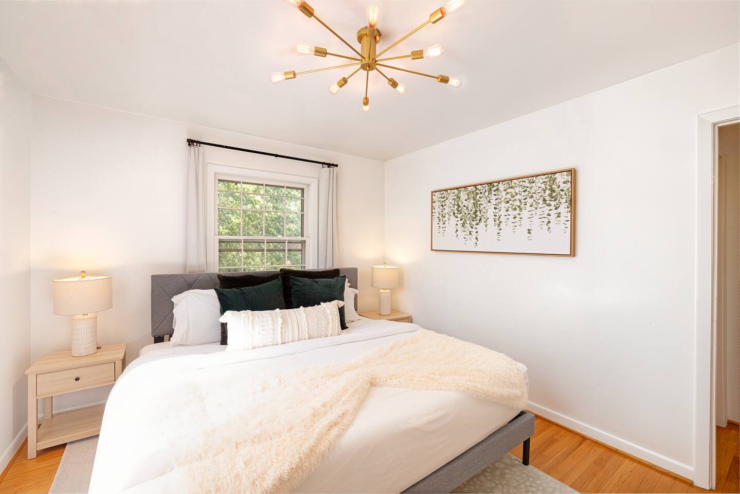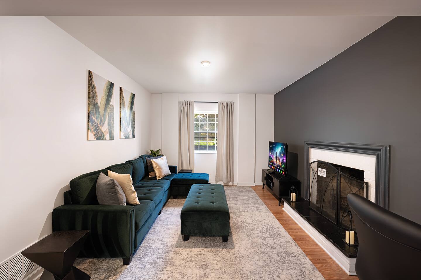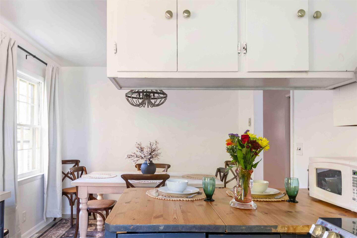 -The home is great for families looking for spaciousness and a place to relax without having to venture far to explore everything that the area has to offer. The Kitchen is on the smaller side. The dining room table fits six. There are two barstools as well. If you have a large group just keep in mind the kitchen is smaller. The quiet 4 bedroom, 2 bath home features 3 bedrooms upstairs and 1 downstairs with an abundance of natural light. 🚙 PARKING Hassle-free parking spot (4) available 2 cars can fit on the driveway and 2 more can park on the street a rare find in Charlottesville! 🏡 ACCESS The single family home is located in a quiet residential neighborhood. 🛏️ BEDROOMS 1✓ King bed + Working Desk & Smart TV 2✓ King bed & Smart TV 3✓ Queen bed + Smart TV 4✓ TWO Queen beds (Basement floor) ✓ Extra: Queen Bed in living room (main floor) the sectional sofa pulls out and can be converted into a 6th bed 🛋️ THE HOME Keyless entry front-door provided ✓ High Speed Wi-Fi ✓ Smart TVs ✓ Large Sectional Couch and Cozy Accent Chairs ✓ Cozy and stylish living room is the ideal place to unwind after a busy day exploring the city. ✓ Washer and Dryer + Detergent ✓ 2 Full Bathrooms 👨🏼🍳 KITCHEN Prepare meals in the well-stocked kitchen, complete with modern appliances, cookware, and dishes and fully equipped kitchen with: ✓ Coffee machine ✓ Blender ✓ Kettle ✓ Toaster ✓ Cooking utensils ✓ Knife set ✓ Cooking pans ✓ Condiments ✓ Coffee ✓ Ice Machine 🚿 BATHROOMS ✓ Body & Hand Towels ✓ Shampoo ✓ Conditioner ✓ Body Wash ✓ Hand Soap ✓ Hair dryer ✓ Toilet paper 👶🏼 FAMILY-FRIENDLY Planning a family vacation? We’ve got you covered! Our home is equipped with everything you need to make your stay with children smooth and enjoyable: ✓ Pack N Play for your little one’s comfort ✓ Baby high chair for convenient feeding Distance to Nearby Point of Interest: • Scott Stadium - 1 mile walk or 3 minute drive • John Paul Arena - 5 minute drive • Downtown Mall - 5 minute drive