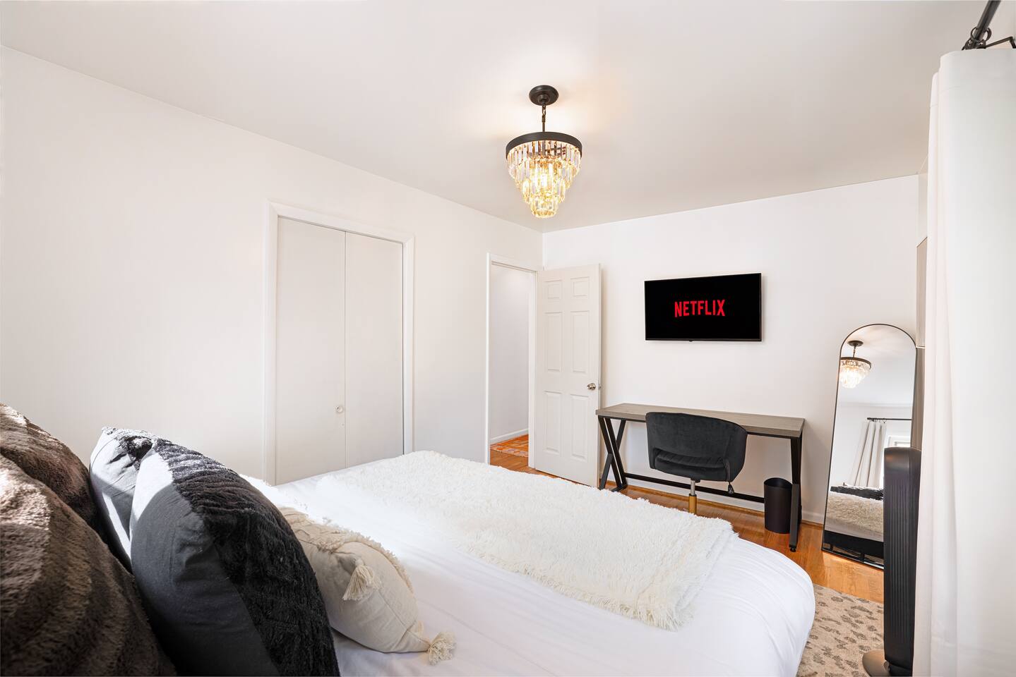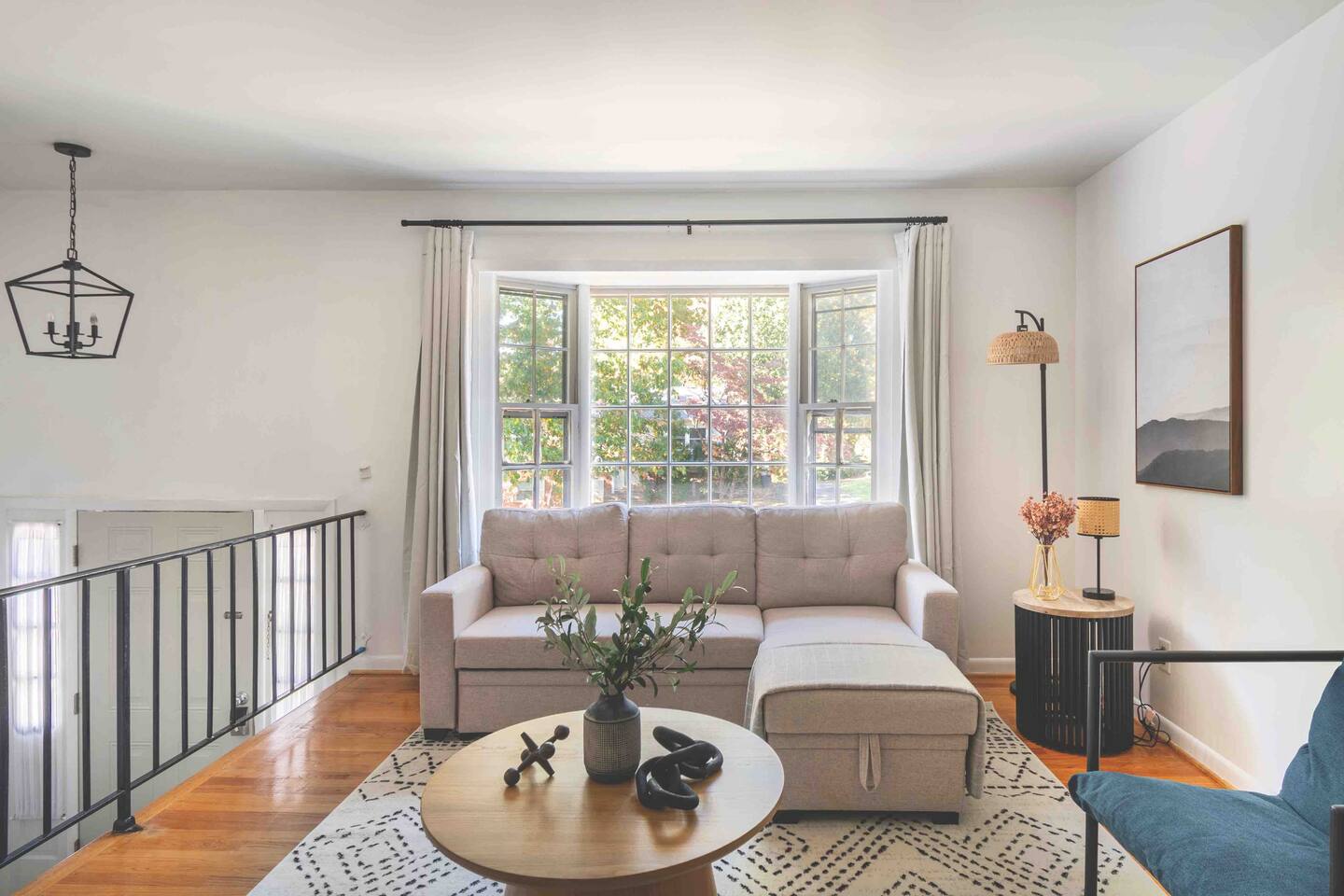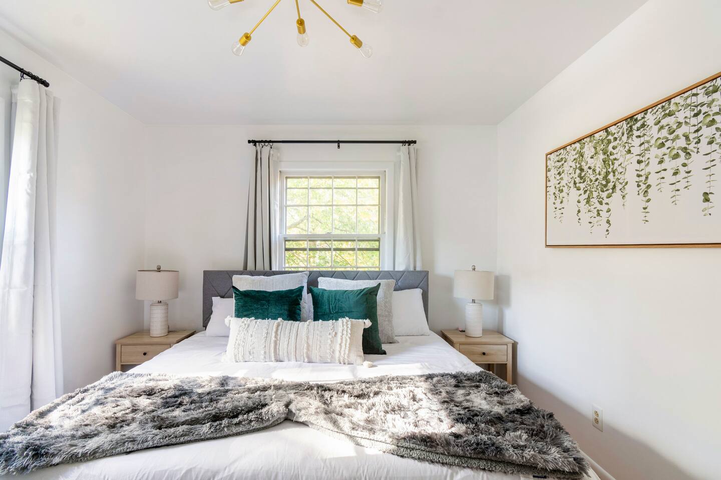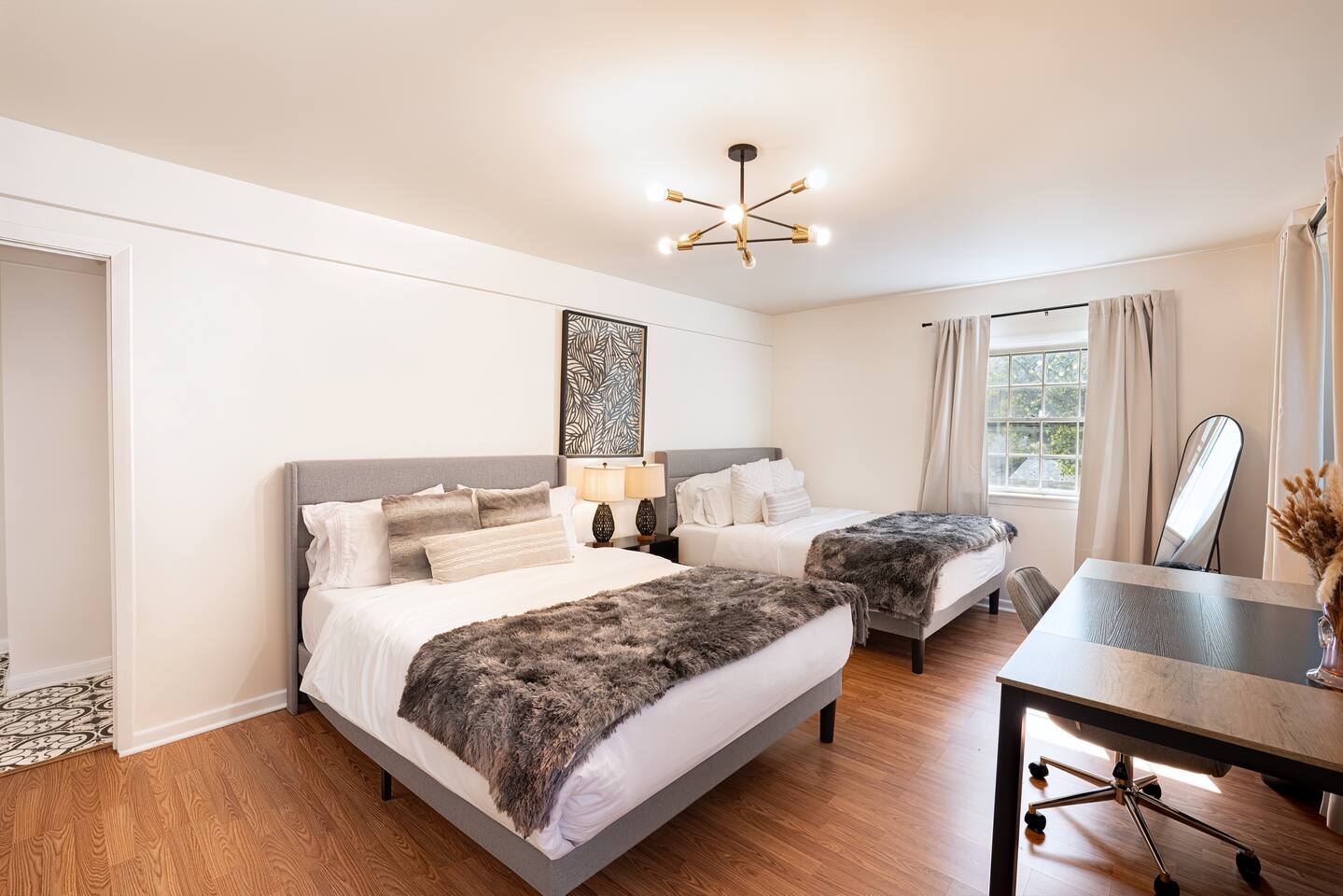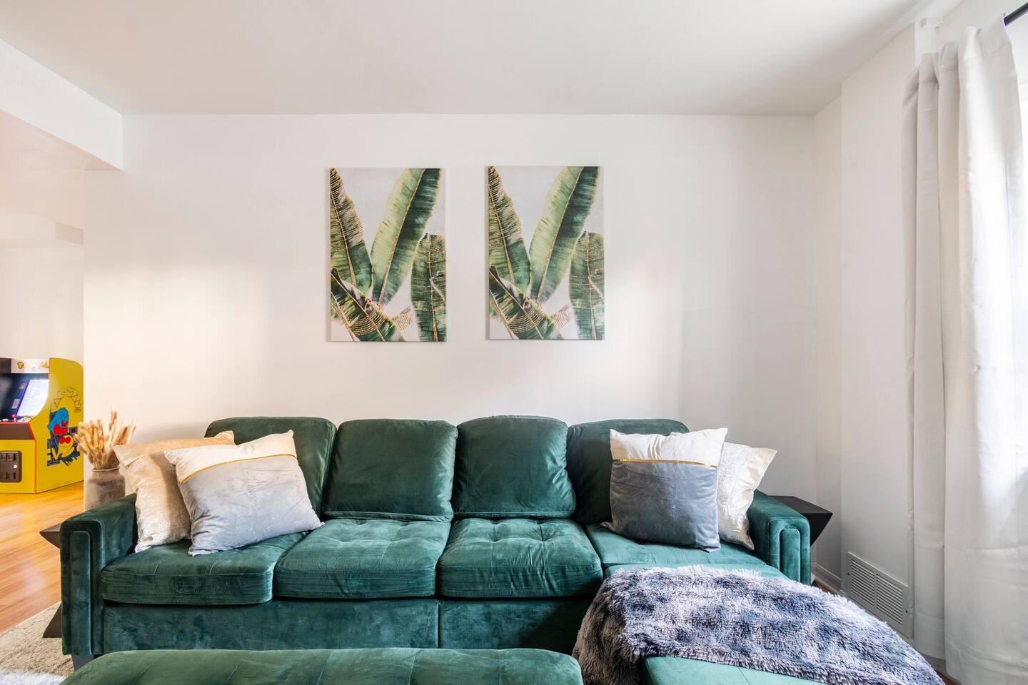 -The home is great for families looking for spaciousness and a place to relax without having to venture far to explore everything that the area has to offer. The Kitchen is on the smaller side. The dining room table fits six. There are two barstools as well. If you have a large group just keep in mind the kitchen is smaller. The quiet 4 bedroom, 2 bath home features 3 bedrooms upstairs and 1 downstairs with an abundance of natural light. 🚙 PARKING Hassle-free parking spot (4) available 2 cars can fit on the driveway and 2 more can park on the street a rare find in Charlottesville! 🏡 ACCESS The single family home is located in a quiet residential neighborhood. 🛏️ BEDROOMS 1✓ King bed + Working Desk & Smart TV 2✓ King bed & Smart TV 3✓ Queen bed + Smart TV 4✓ TWO Queen beds (Basement floor) ✓ Extra: Queen Bed in living room (main floor) the sectional sofa pulls out and can be converted into a 6th bed 🛋️ THE HOME Keyless entry front-door provided ✓ High Speed Wi-Fi ✓ Smart TVs ✓ Large Sectional Couch and Cozy Accent Chairs ✓ Cozy and stylish living room is the ideal place to unwind after a busy day exploring the city. ✓ Washer and Dryer + Detergent ✓ 2 Full Bathrooms 👨🏼🍳 KITCHEN Prepare meals in the well-stocked kitchen, complete with modern appliances, cookware, and dishes and fully equipped kitchen with: ✓ Coffee machine ✓ Blender ✓ Kettle ✓ Toaster ✓ Cooking utensils ✓ Knife set ✓ Cooking pans ✓ Condiments ✓ Coffee ✓ Ice Machine 🚿 BATHROOMS ✓ Body & Hand Towels ✓ Shampoo ✓ Conditioner ✓ Body Wash ✓ Hand Soap ✓ Hair dryer ✓ Toilet paper 👶🏼 FAMILY-FRIENDLY Planning a family vacation? We’ve got you covered! Our home is equipped with everything you need to make your stay with children smooth and enjoyable: ✓ Pack N Play for your little one’s comfort ✓ Baby high chair for convenient feeding Distance to Nearby Point of Interest: • Scott Stadium - 1 mile walk or 3 minute drive • John Paul Arena - 5 minute drive • Downtown Mall - 5 minute drive