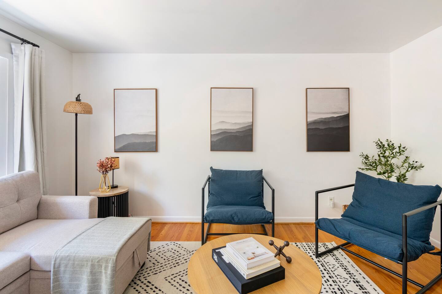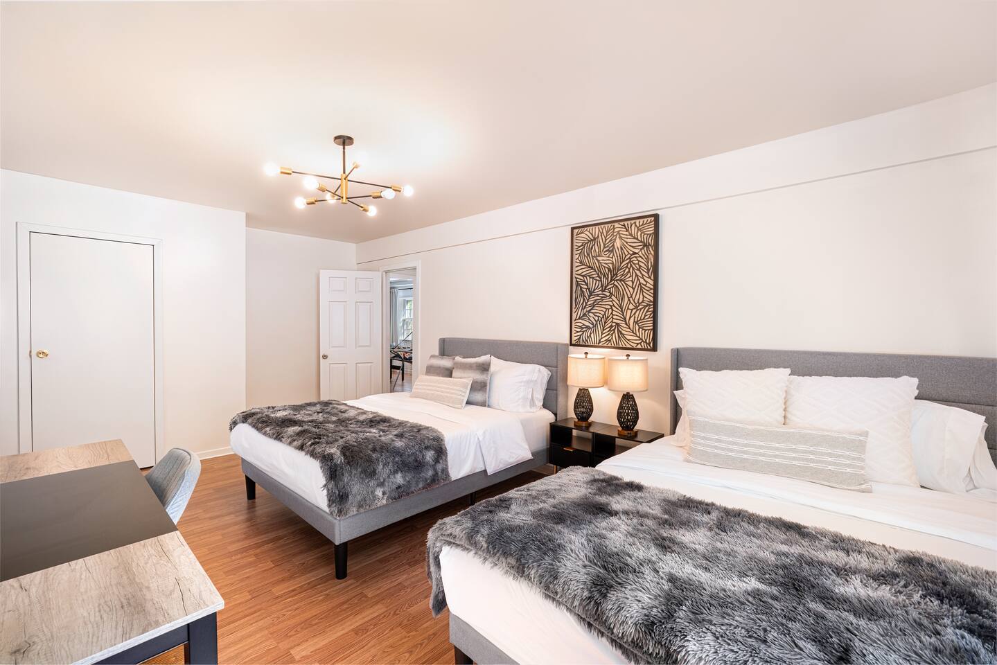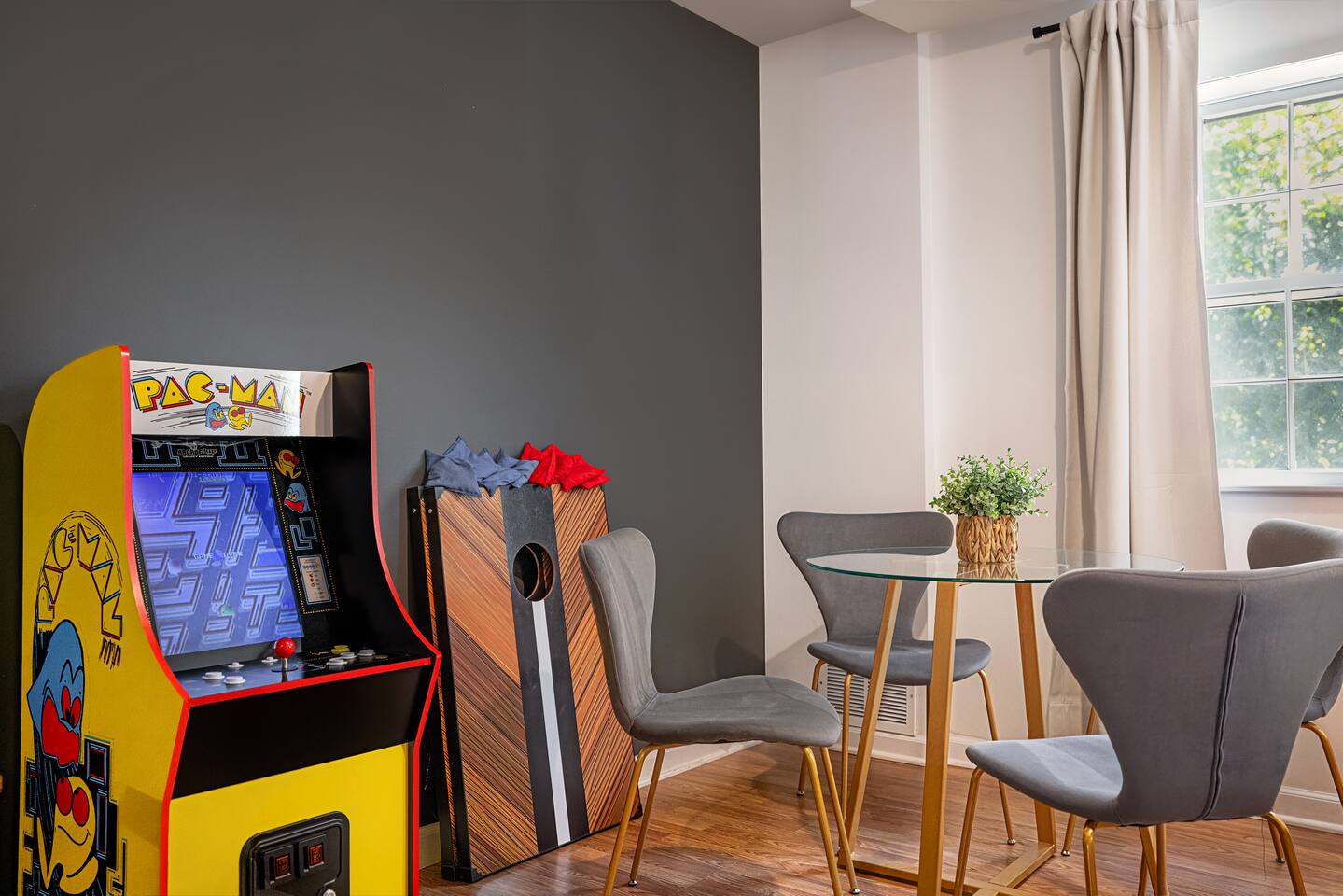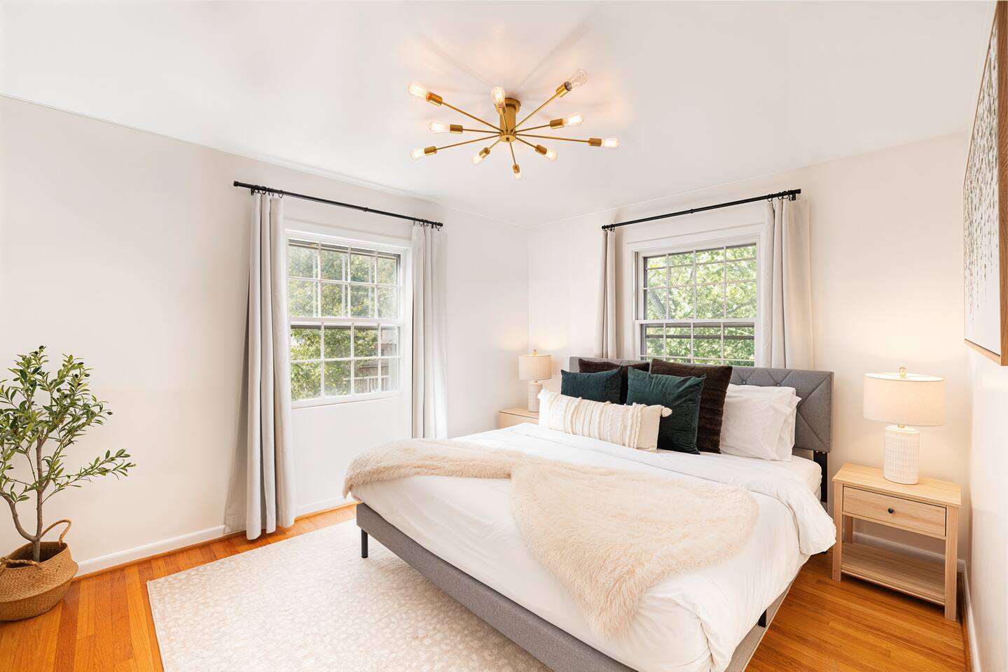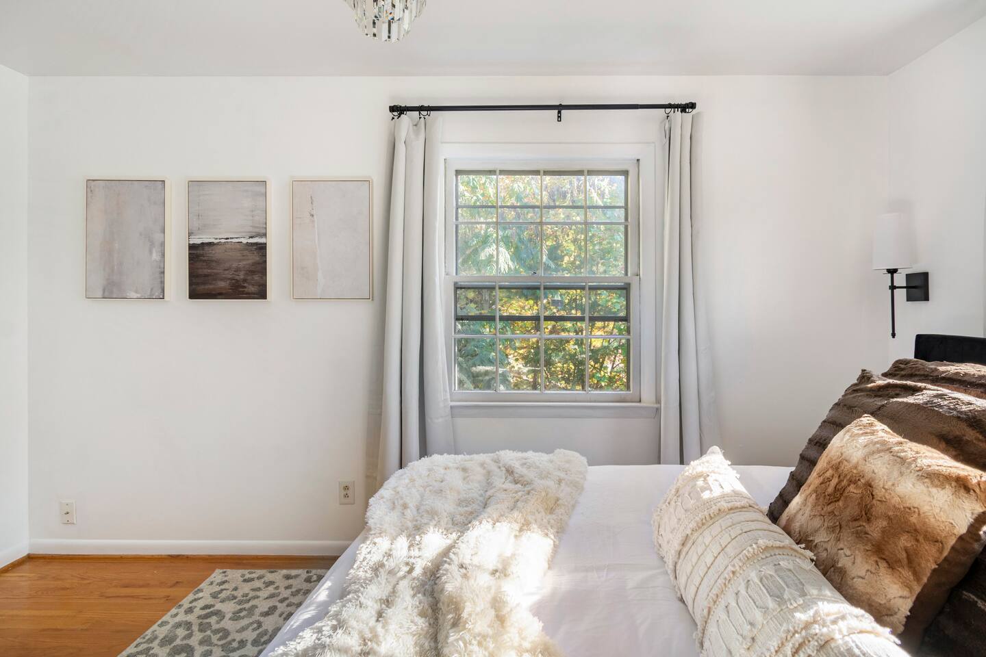 -The home is great for families looking for spaciousness and a place to relax without having to venture far to explore everything that the area has to offer. The Kitchen is on the smaller side. The dining room table fits six. There are two barstools as well. If you have a large group just keep in mind the kitchen is smaller. The quiet 4 bedroom, 2 bath home features 3 bedrooms upstairs and 1 downstairs with an abundance of natural light. 🚙 PARKING Hassle-free parking spot (4) available 2 cars can fit on the driveway and 2 more can park on the street a rare find in Charlottesville! 🏡 ACCESS The single family home is located in a quiet residential neighborhood. 🛏️ BEDROOMS 1✓ King bed + Working Desk & Smart TV 2✓ King bed & Smart TV 3✓ Queen bed + Smart TV 4✓ TWO Queen beds (Basement floor) ✓ Extra: Queen Bed in living room (main floor) the sectional sofa pulls out and can be converted into a 6th bed 🛋️ THE HOME Keyless entry front-door provided ✓ High Speed Wi-Fi ✓ Smart TVs ✓ Large Sectional Couch and Cozy Accent Chairs ✓ Cozy and stylish living room is the ideal place to unwind after a busy day exploring the city. ✓ Washer and Dryer + Detergent ✓ 2 Full Bathrooms 👨🏼🍳 KITCHEN Prepare meals in the well-stocked kitchen, complete with modern appliances, cookware, and dishes and fully equipped kitchen with: ✓ Coffee machine ✓ Blender ✓ Kettle ✓ Toaster ✓ Cooking utensils ✓ Knife set ✓ Cooking pans ✓ Condiments ✓ Coffee ✓ Ice Machine 🚿 BATHROOMS ✓ Body & Hand Towels ✓ Shampoo ✓ Conditioner ✓ Body Wash ✓ Hand Soap ✓ Hair dryer ✓ Toilet paper 👶🏼 FAMILY-FRIENDLY Planning a family vacation? We’ve got you covered! Our home is equipped with everything you need to make your stay with children smooth and enjoyable: ✓ Pack N Play for your little one’s comfort ✓ Baby high chair for convenient feeding Distance to Nearby Point of Interest: • Scott Stadium - 1 mile walk or 3 minute drive • John Paul Arena - 5 minute drive • Downtown Mall - 5 minute drive