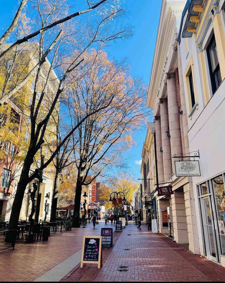 Navigating Charlottesville is a breeze, and we've got the inside scoop to ensure you explore every nook and cranny of this charming city with ease! -Zooming in Style: Want the freedom to roam? Renting a car is the way to go! Cruise through the scenic drives, visit nearby wineries, and make spontaneous stops at breathtaking viewpoints. Parking is a cinch, and the open road is your oyster. -Pedal Power: Feeling eco-friendly and adventurous? Grab one of our complimentary bikes and pedal your way through Charlottesville's bike-friendly streets. Explore the Downtown Mall, discover hidden gems in neighborhoods, and feel the wind in your hair as you embrace the local cycling culture. -Hop-On, Hop-Off Transit: Public transportation is your ticket to hassle-free city exploration. The Charlottesville Area Transit (CAT) buses conveniently connect key spots around town, making it a budget-friendly and eco-conscious option. Check out the CAT routes, and you'll be navigating like a local in no time. -Stroll and Soak It In: Lace-up your comfy shoes because Charlottesville is a walker's paradise. Wander through historic streets, meander along the Downtown Mall, and soak in the vibrant atmosphere. With scenic views at every turn, walking is not just transportation – it's a journey of discovery.