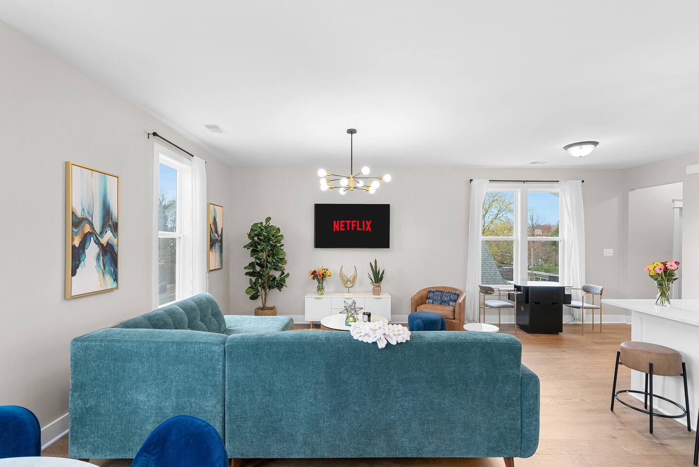 This spacious duplex offers two beautifully designed units (Unit A & Unit B), and can also be booked together as a 7-bedroom home—perfect for large groups, families, or team stays. 🚧 Now Booking for May Stays. We are currently completing final setup and professional photography. To give you a preview, photos shown feature Unit B (upper level), which reflects the design, layout, and quality you can expect throughout the property. Unit A will feature the same signature Lux Listings style—modern, upscale, and thoughtfully curated for comfort. ✨ When you book, you can expect: * Consistent design and quality across both units * Clean, stylish, and fully furnished spaces * The trusted Lux Listings experience guests love 📸 Please note: Additional photos will be added soon as setup is finalized. Welcome to your perfect Alexandria getaway — a spacious 4-bedroom home designed for comfort, fun, and unforgettable stays. Whether you're visiting for a family vacation, group trip, or business retreat, this beautifully appointed home offers the ideal blend of relaxation and entertainment just minutes from Washington, DC. 🎱 Game Room Highlight Unwind in your private game room featuring a full-size pool table — perfect for friendly competition and late-night fun. 🛋️ Comfortable & Spacious Living 4 thoughtfully designed bedrooms for restful sleep Open living area perfect for gathering Fully equipped kitchen for home-cooked meals 📍 Prime Alexandria Location Located in a quiet, convenient neighborhood with easy access to Old Town Alexandria, dining, shopping, and major DC attractions. Perfect For: Families Group getaways Business travelers Weekend escapes Enjoy the space, entertainment, and location all in one place — your Alexandria home away from home.
